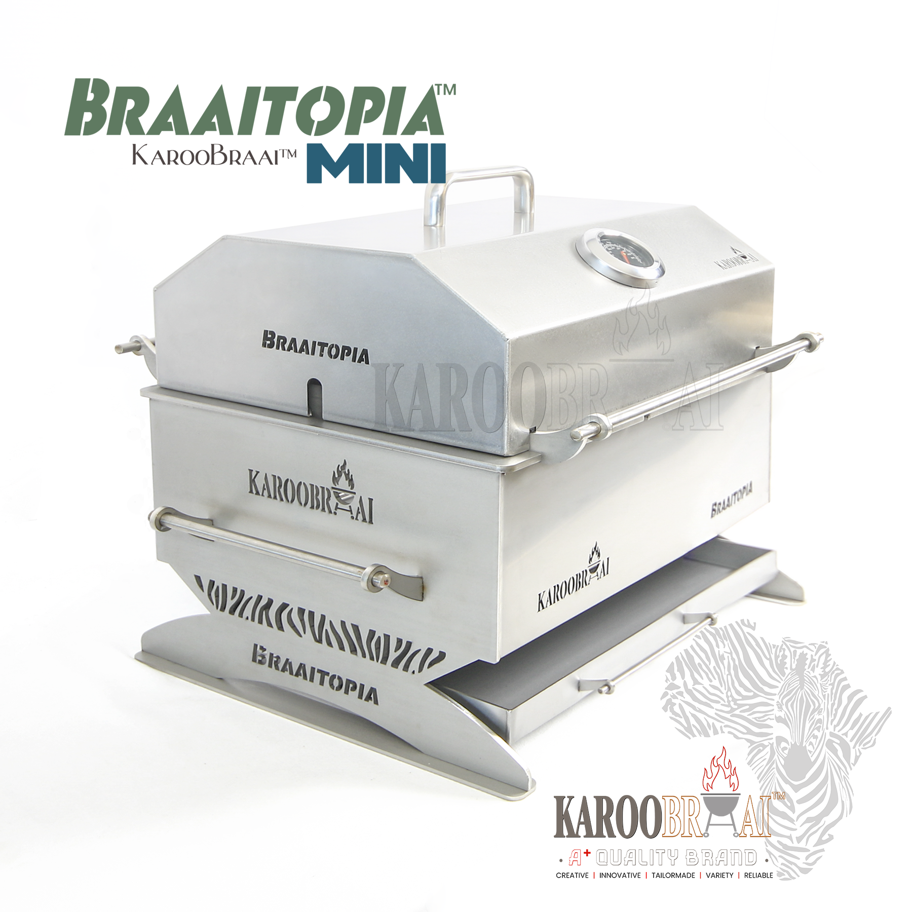 We have included a variety of braaiing options all in one product “BRAAITOPIA™” so, no need to purchase different products to have a full braai experience.