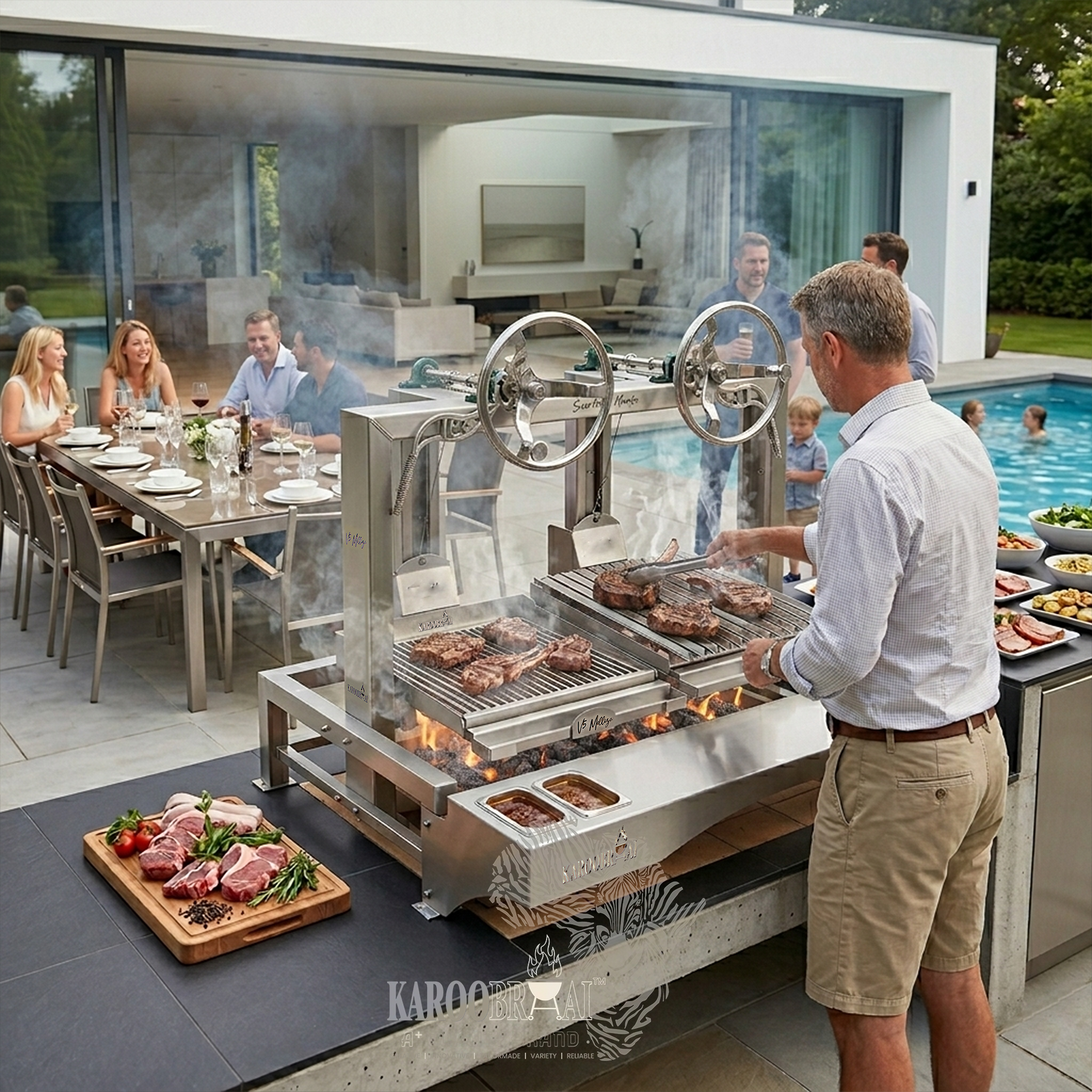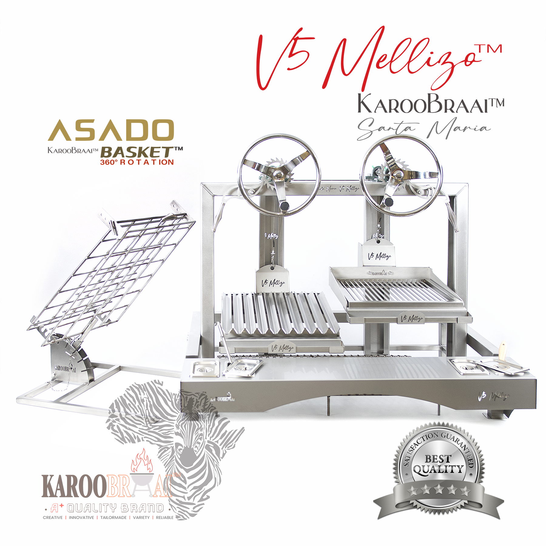 The Stainless Steel KarooBraai™ V5 Mellizo™ Argentine Santa Maria Braai represents a pinnacle in outdoor braai technology,