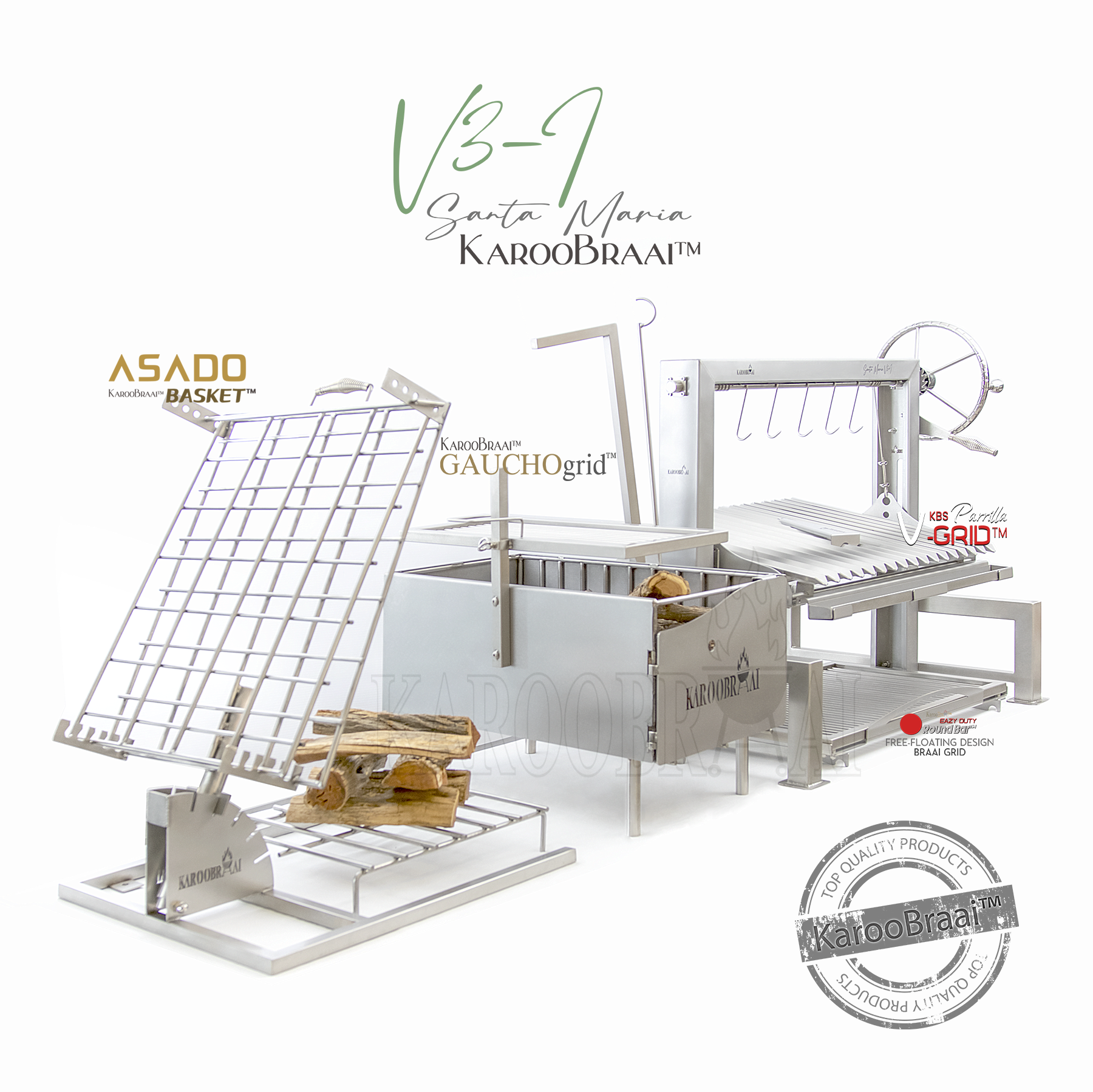 KarooBraai™ Argentinian Santa Maria V4 Supremo with Full Spit & Carving Tray & Lid, etc – KarooBraai™